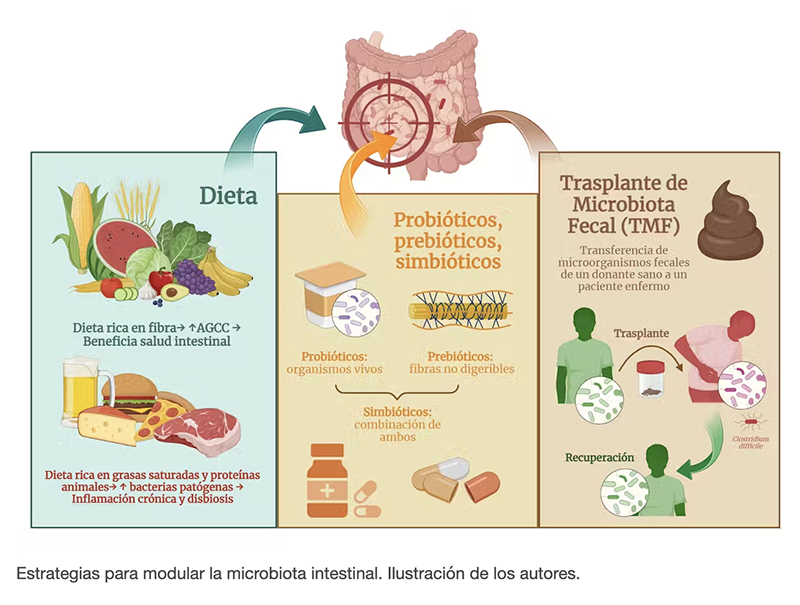 Actualmente, la microbiota se considera una diana terapéutica sobre la que actuar para mejorar la salud. Dentro de las principales estrategias destacan: